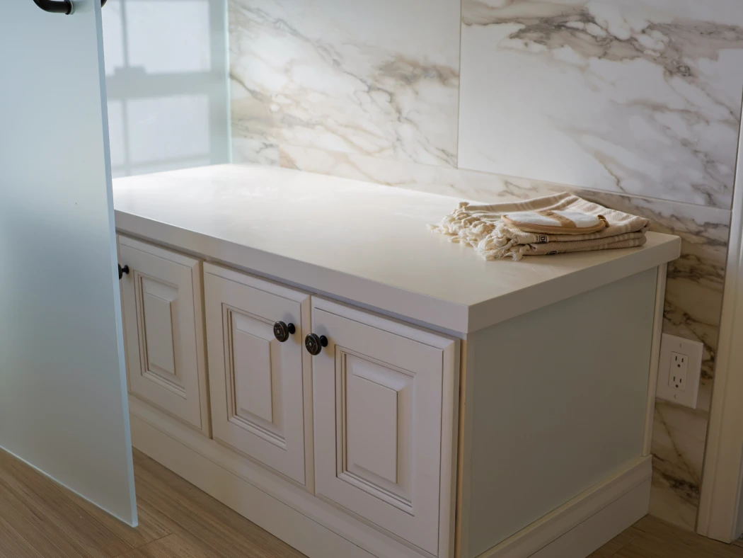 From elegant freestanding tubs to seamless zero-entry showers, we meticulously design every aspect of your bathroom to reflect your personal taste while enhancing functionality. With Box Construction, your bathroom becomes a cherished escape within your home.