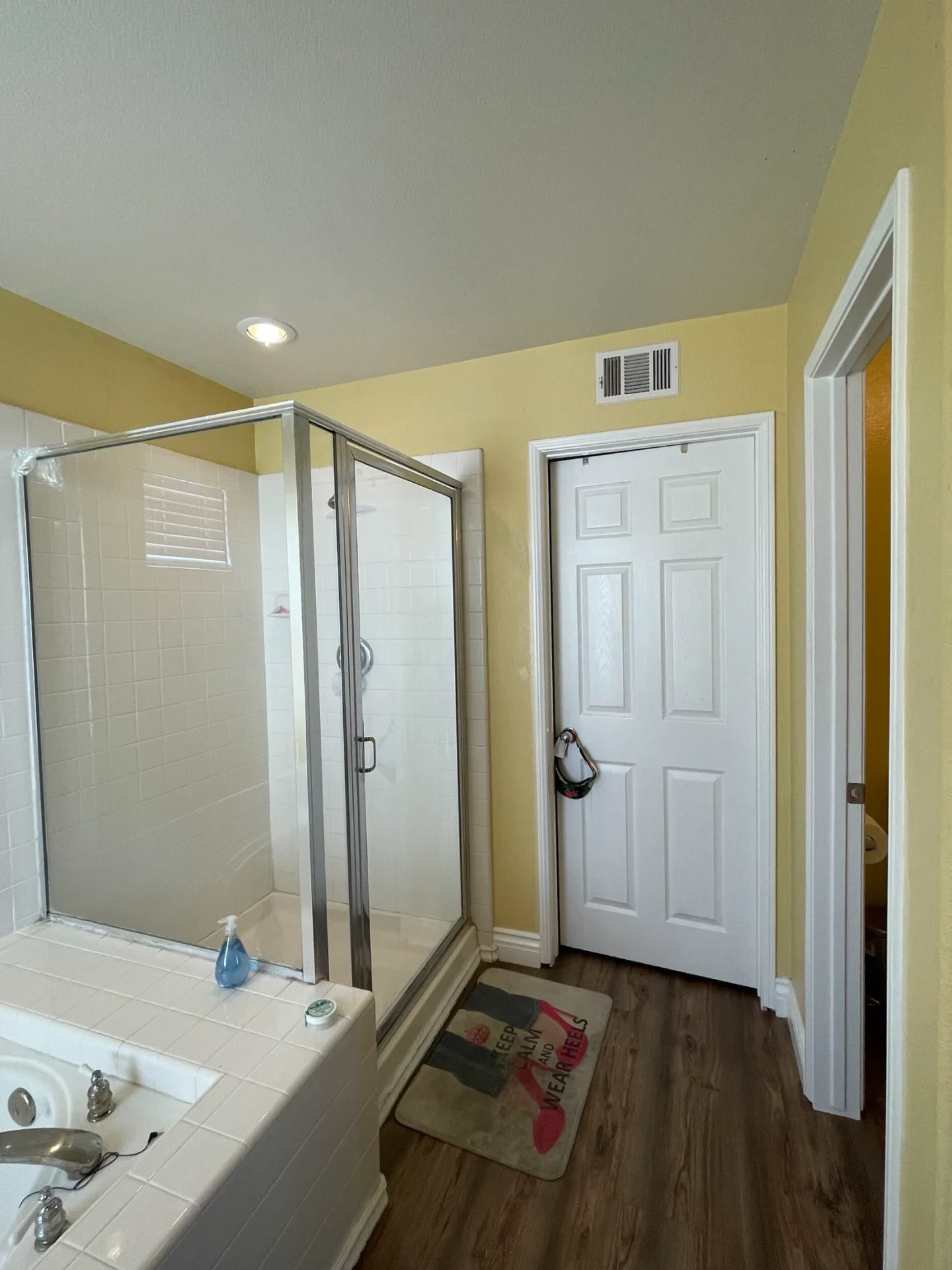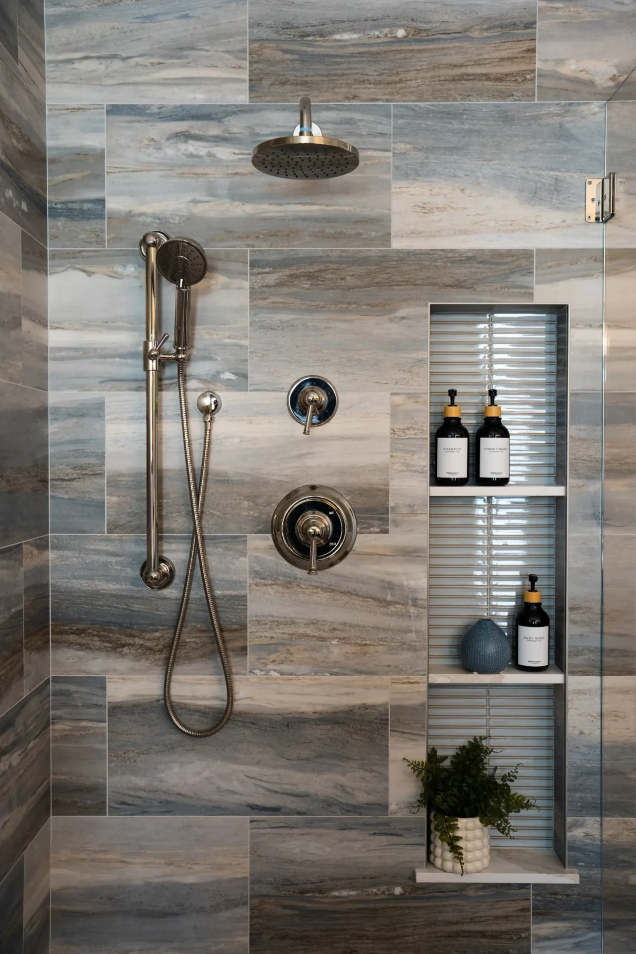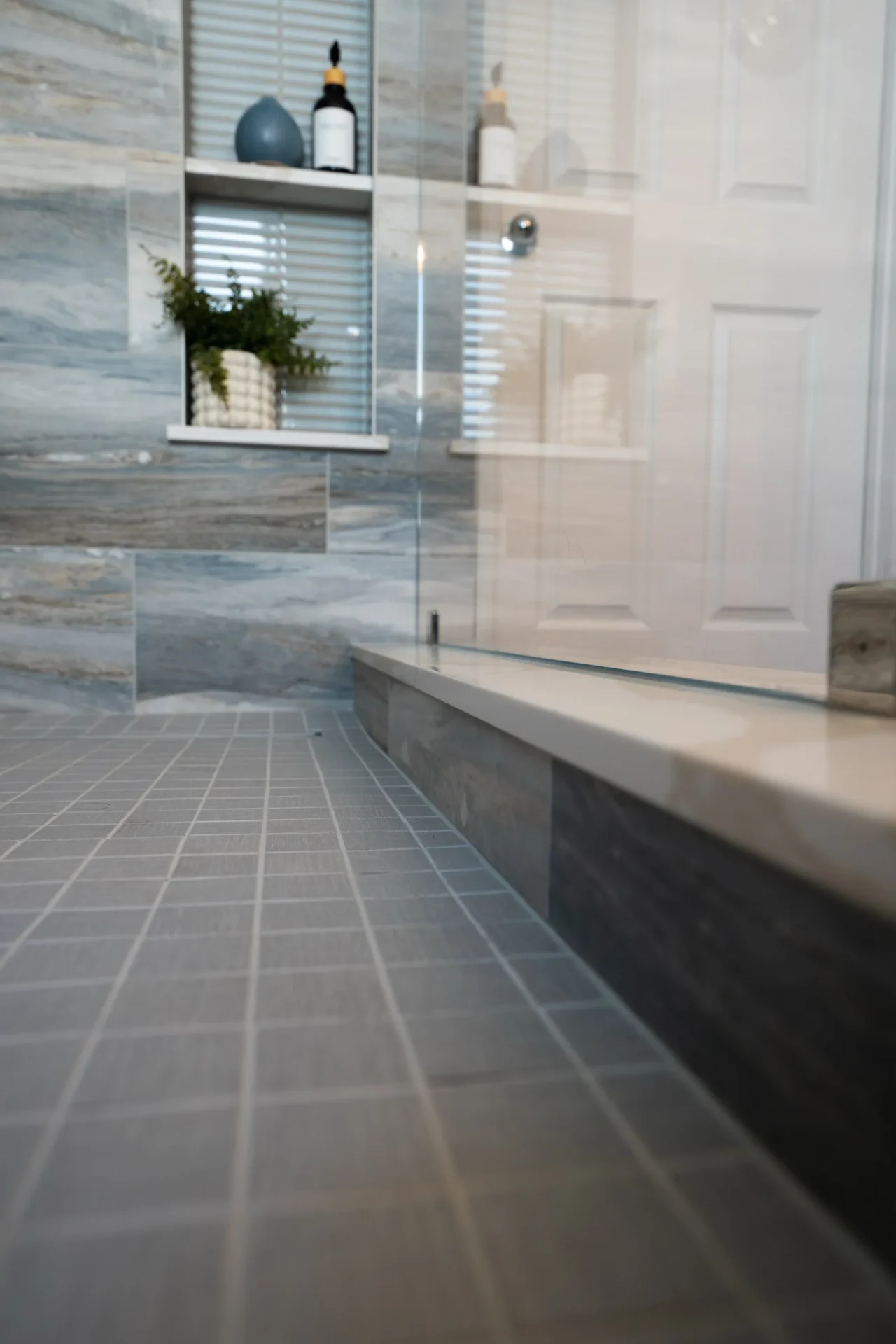 The main objective of this project was to replace the unused fiberglass Roman tub with a large walk-in shower. Gary and Katie desired a more functional, spa-like layout with easy accessibility.