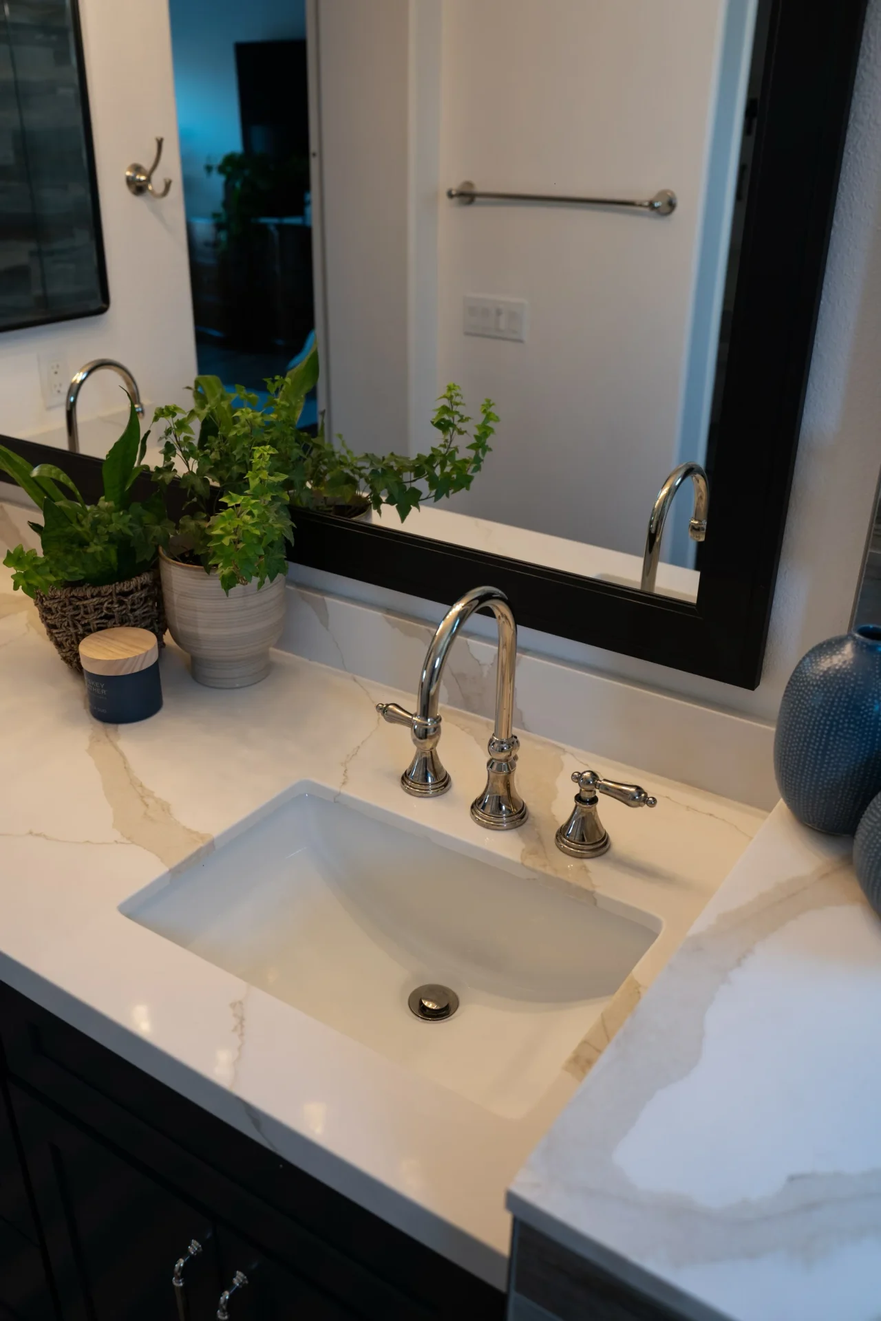 Gary and Katie’s master bathroom in Temecula needed an upgrade from its outdated, builder-grade features. They wanted a fresh, Tommy Hilfiger-inspired design that combined a relaxed, casual look with a touch of sophistication. The result is a soothing, spacious bathroom that balances comfort and style.