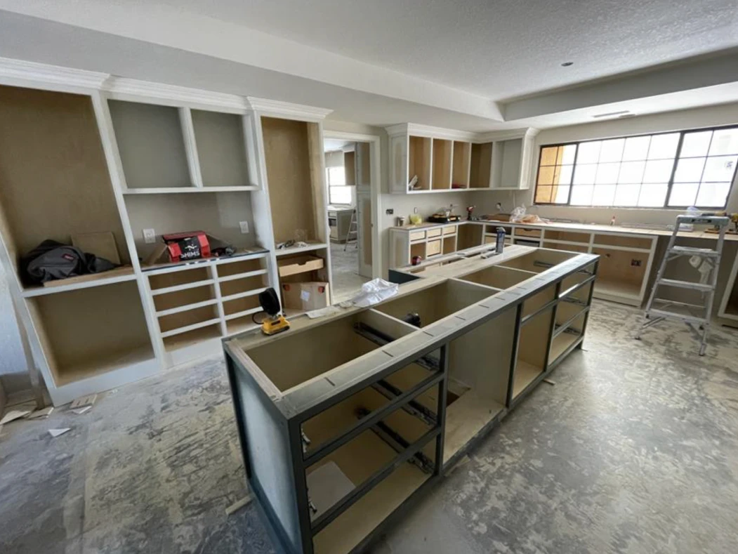 The construction phase brought the plans to life. To create Carina’s dream kitchen, our team relocated the entrance, tore down a closet, and installed a structural beam for safety.