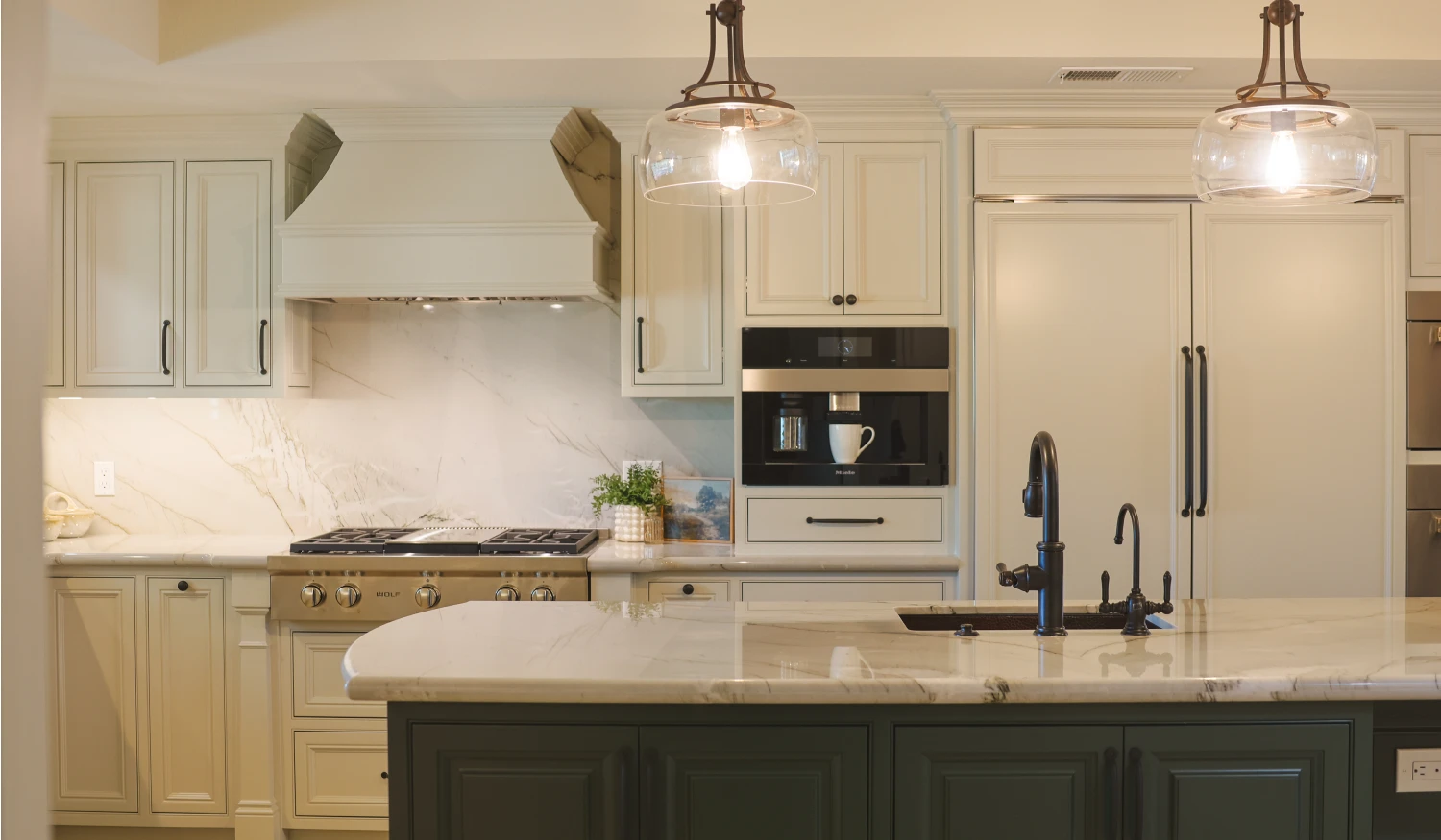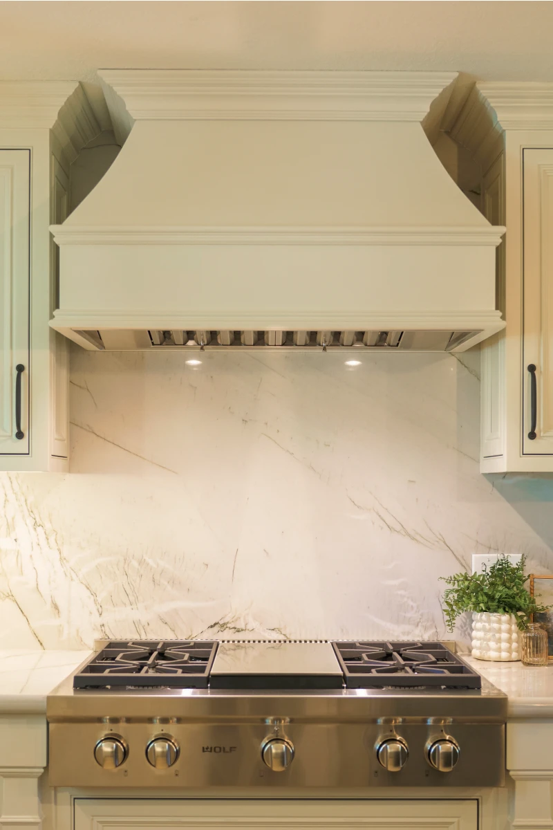 Custom Appliance Integration: Our team installed a Wolf stovetop and an oversized Subzero refrigerator with custom cabinetry panels that blend seamlessly into the kitchen's design. We installed a larger sink that features innovative cutting-board slide-ins, providing a top-notch culinary experience.
