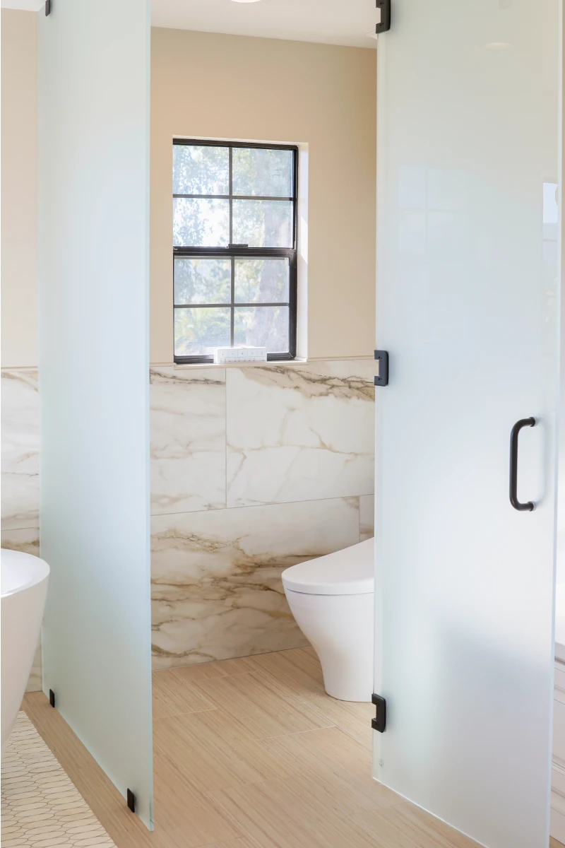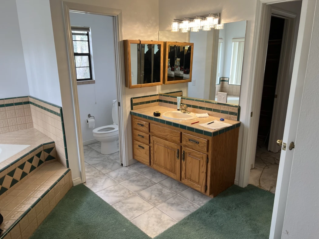 Master Bathroom Sanctuary: We completely transformed the master bathroom by replacing the old Roman-style tub and green carpet with a luxurious freestanding tub and tile. The shower was redesigned using 24” x 48” tiles and ½” Starphire glass, creating a spa-like, inviting atmosphere.