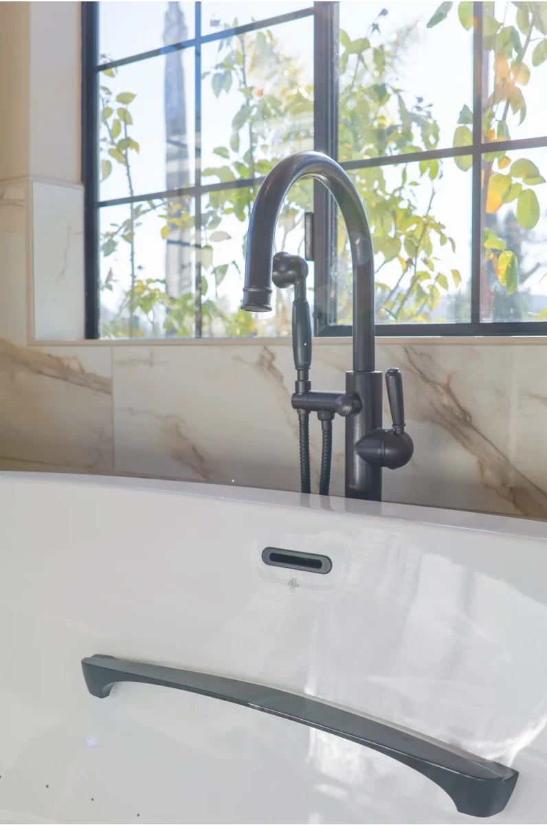 Finally, the master bathroom renovation involved removing the dated elements and crafting a modern haven with a freestanding tub and a spacious shower.