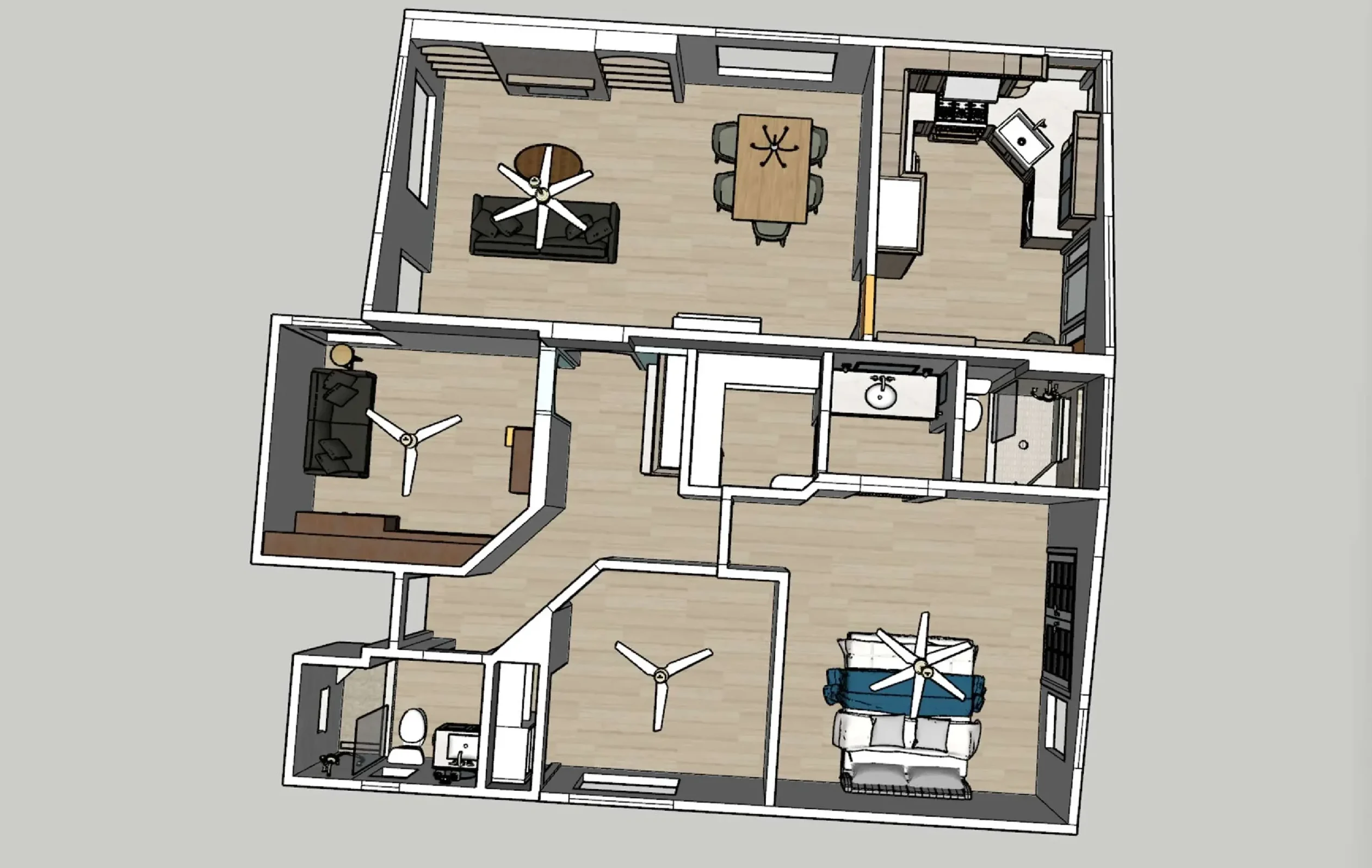 We utilize a variety of software to bring our designs to life, including SketchUp for comprehensive remodeling visions and aesthetic details, CAD for structural elements, 2020 for precise cabinet designs, and Kubity for immersive 3D walkthroughs.